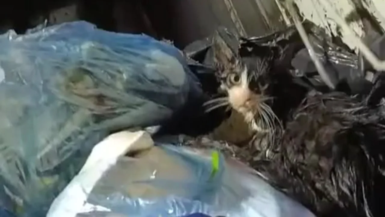 Çöpten kedi çıktı! Yetkililer Kurtardı