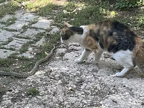 Fare değil bu kez yılan! Kedi rakibini alt etti