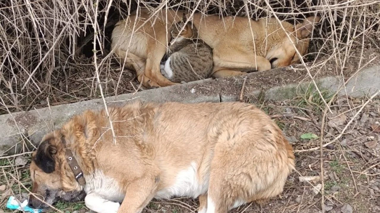 Görüntüleri cep telefonuyla kaydeden Sedat Saraç, “Normalde pek anlaşamayan iki hayvanın böylesine huzurlu bir şekilde uyuması beni çok duygulandırdı. İnsanlığa güzel bir mesaj veriyorlar” dedi.