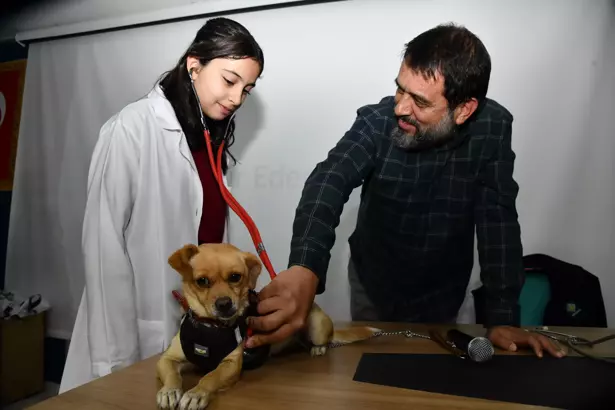 Etkinlikte Belediye Veteriner Hekimi Bünyamin Akın tarafından hayvanlar hakkında bilgilendirici bir sunum yapıldı. Sunumun ardından beyaz önlüklerini giyen öğrenciler, kısa süreliğine veteriner hekim rolüne geçti. Ekiplerin desteğiyle stetoskop kullanan çocuklar, yavru bir köpeğin kalp atışlarını dinledi.