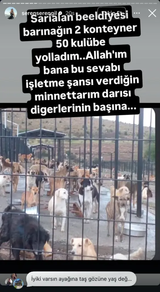 Sokak hayvanları konusunda uzun süredir çalışmalar yürüten Serengil, yaptığı yardımların ardından takipçilerine de çağrıda bulundu. Ünlü sanatçının sahiplenme kararı ve gönderdiği barınma malzemeleri, hayvanseverler tarafından memnuniyetle karşılandı.